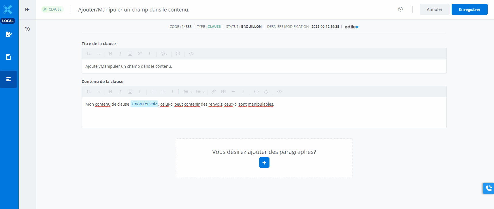 Ajouter / manipuler un renvoi dans un contenu