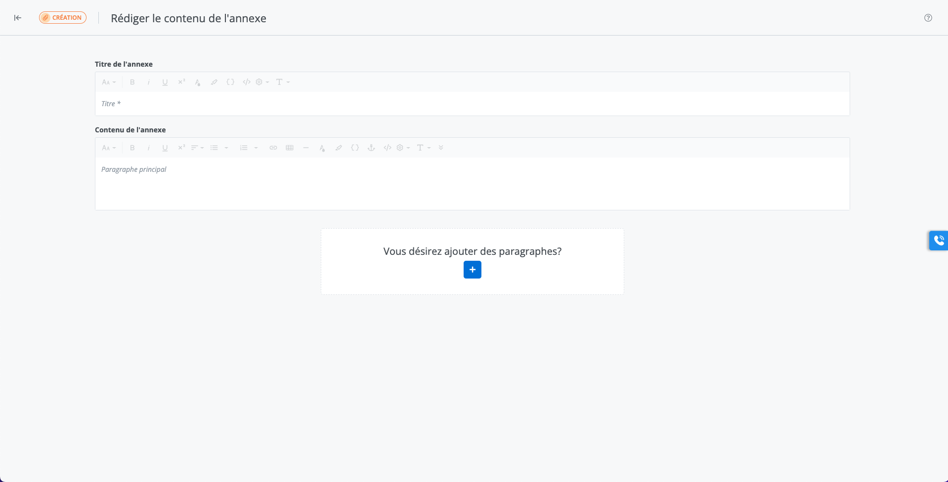 Permet de rédiger le contenu d’une annexe.