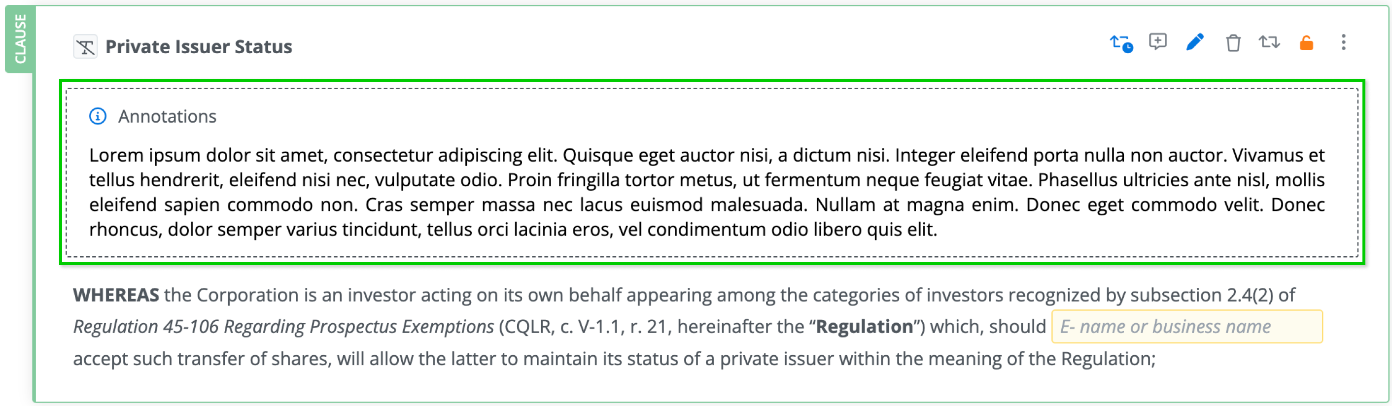 Les annotations servent de guide pour faciliter les choix à faire lors de la production d’un document. Elles présentent des renseignements supplémentaires aux utilisateurs sous forme de texte et de liens.