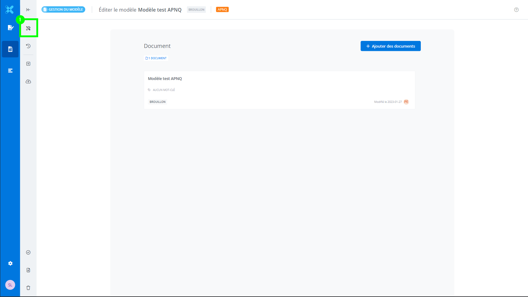 À partir des informations sur un modèle dans Gestion du modèle, cliquer sur propriétés du modèle (1).