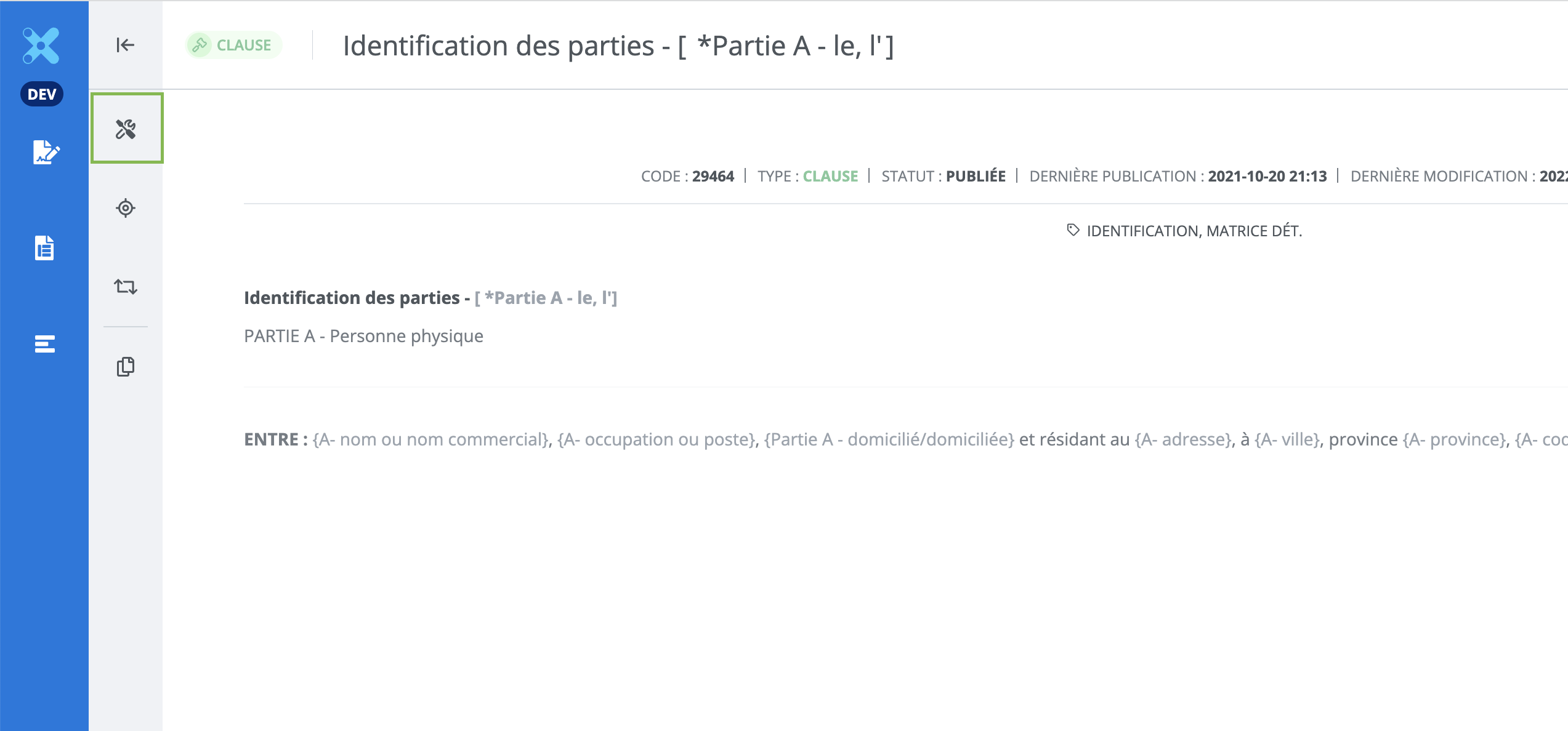 Les mots-clés : modifiable pour une clause publiée et brouillon