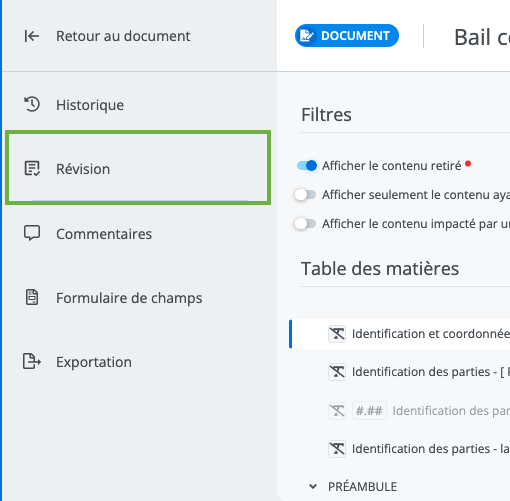 Comment accéder à la fonctionnalité de révision de document?