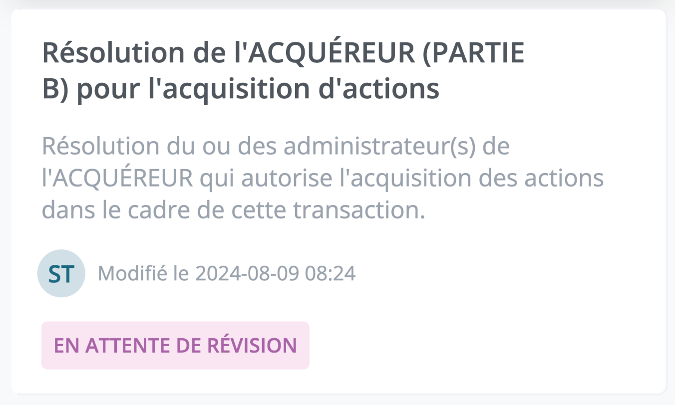 En révision : Sert à indiquer aux collaborateurs que le document a le statut en révision.