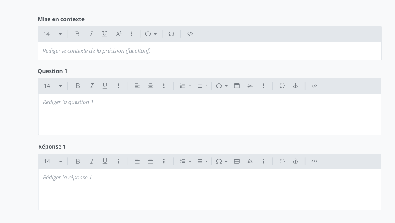 La mise en contexte est un élément facultatif et permet d’inclure plus de détails à vos blocs d’éléments de question/réponse.