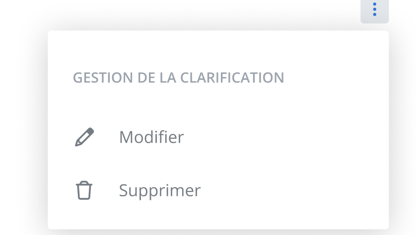 Pour modifier ou supprimer un bloc de clarification, cliquez sur le menu à la droite du bloc de clarification.