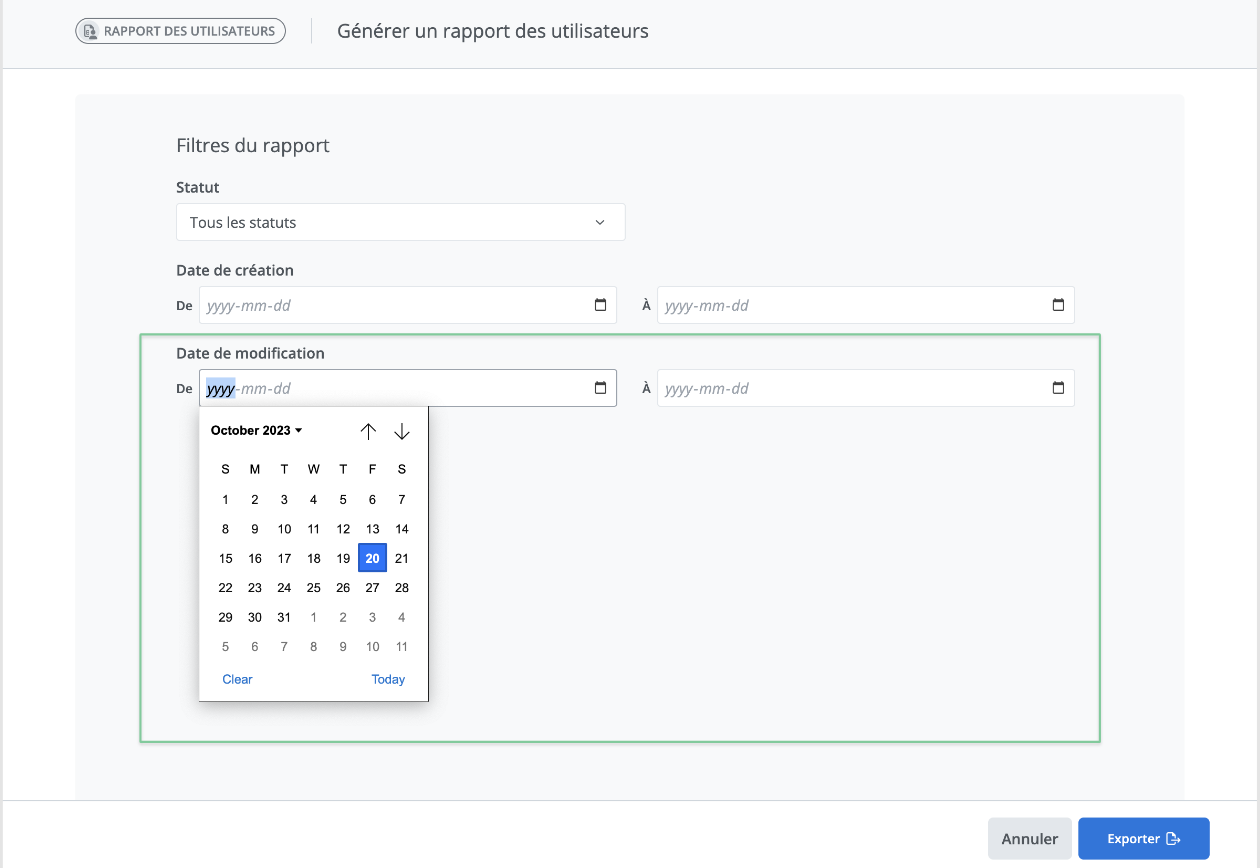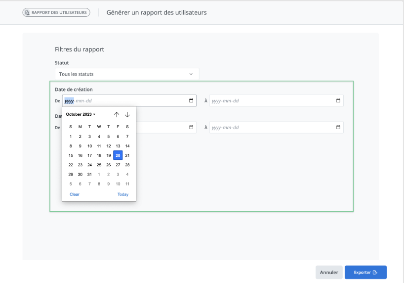 Choisissez ensuite l'étendue de date pour laquelle vous souhaitez obtenir les détails de création des utilisateurs.