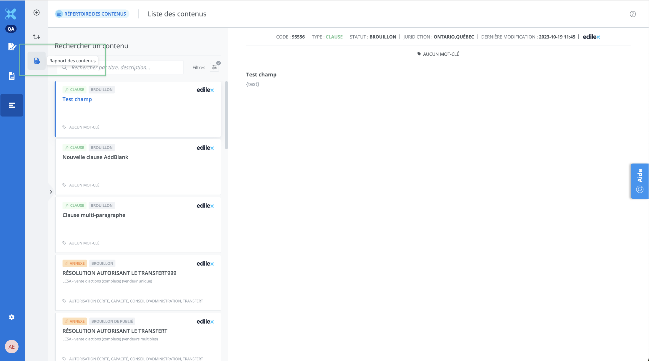 Ce rapport permet d’obtenir le portrait global de vos contenus (sections, clauses, annexes) créés et ajoutés au répertoire, vous pouvez y obtenir des informations tel que: