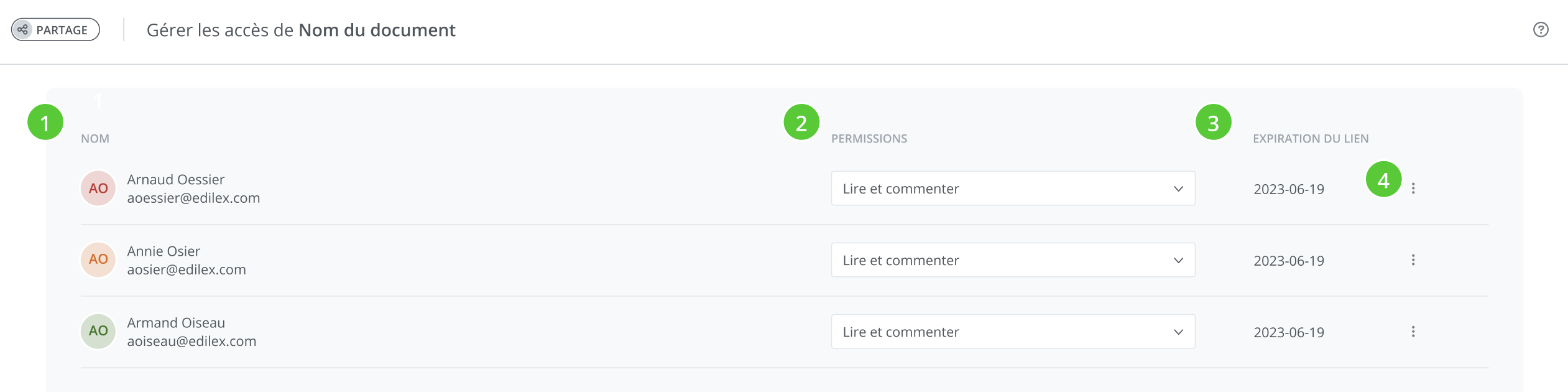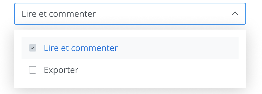 les permissions (Lire et commenter, Exporter),