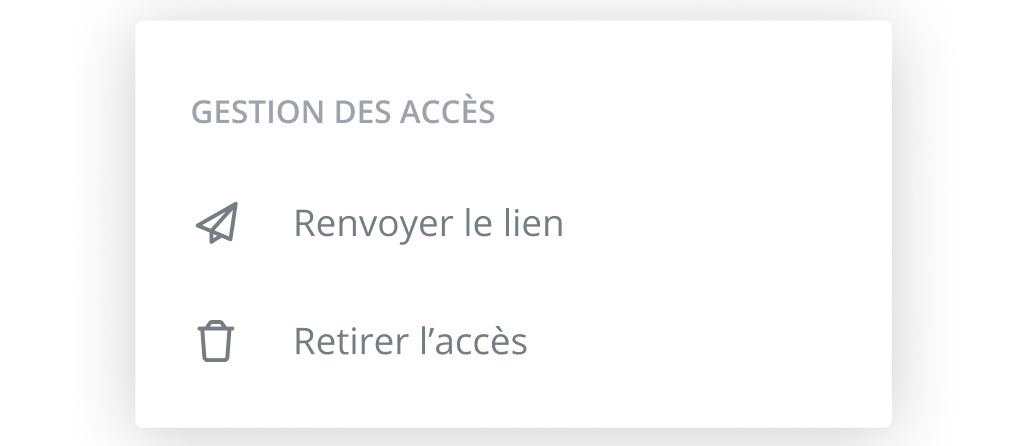 Renvoyer le lien: comme son nom l'indique, l’outil permet de refaire parvenir la notification courriel de l'invitation au destinataire correspondant. À noter que le renvoi du lien a également pour effet de redémarrer la date d’expiration du lien correspondant à 30 jours.