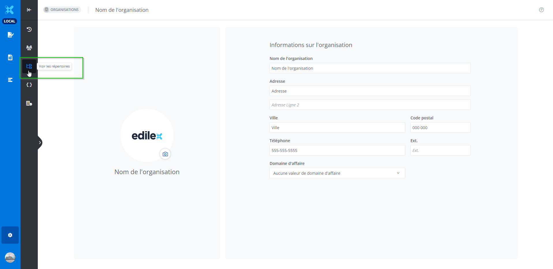 Depuis la fenêtre Modifier les informations sur l'organisation, cliquer sur Voir les répertoires.
