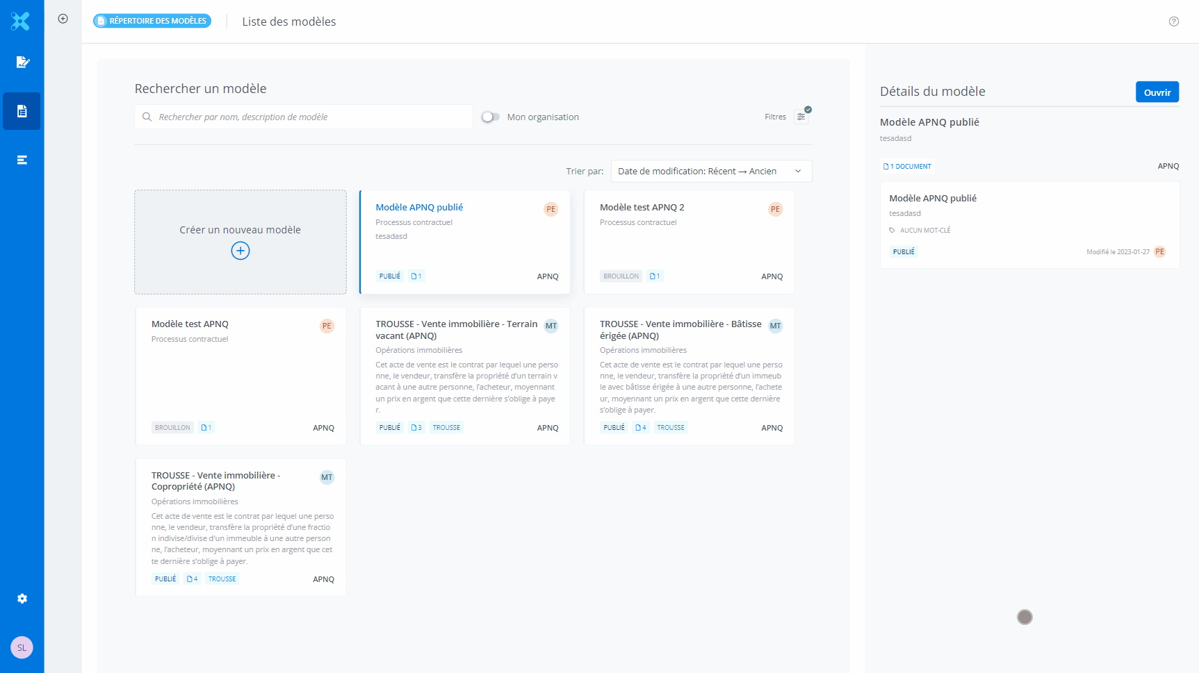 cliquer sur un modèle, l’information sur le modèle est affichée.