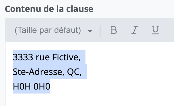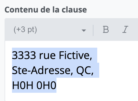 Par exemple, vous désirez grossir la taille d’une adresse ou mettre en gras certaines conditions pour qu’un client précis puisse mieux les voir.