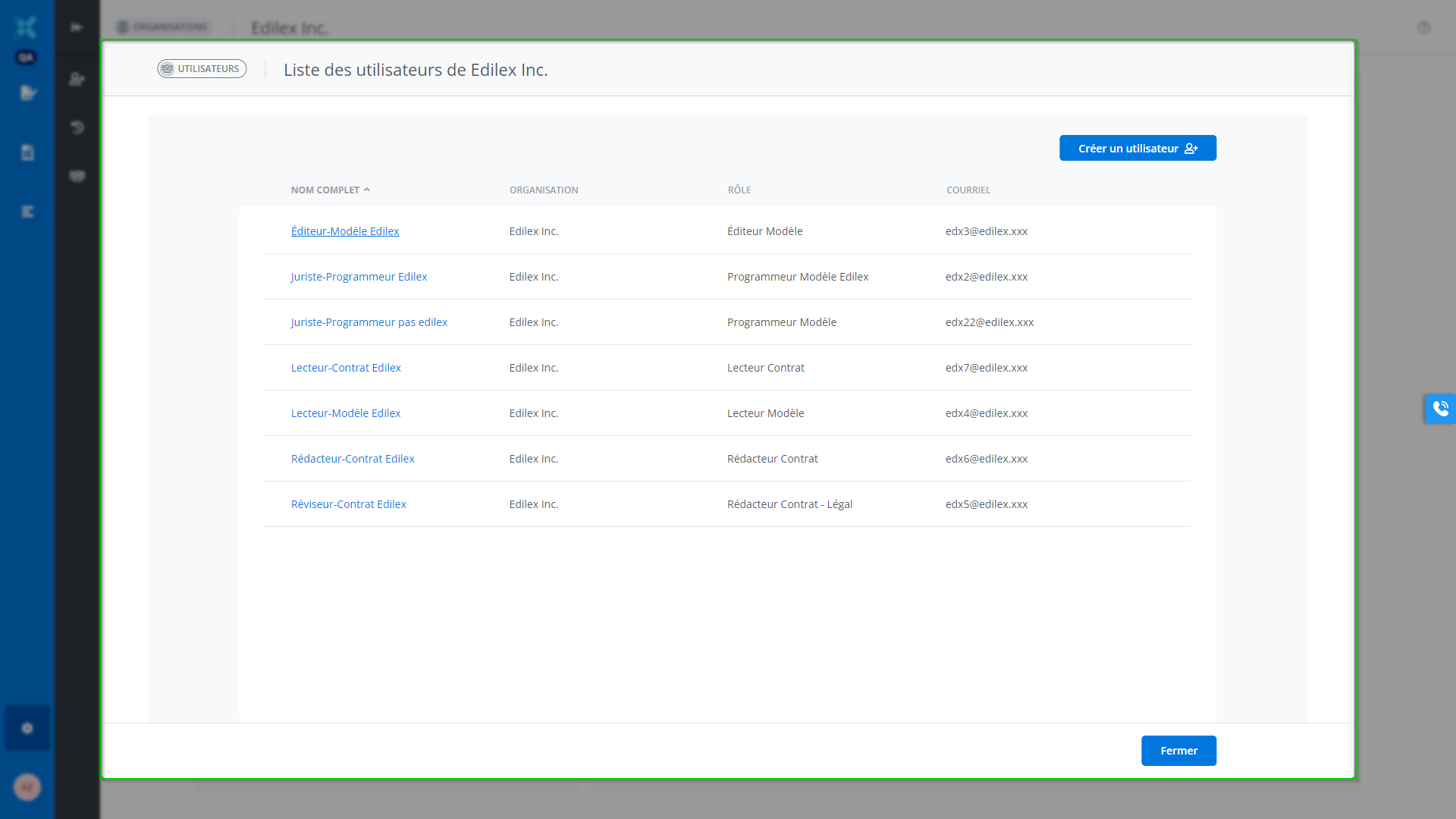 Cette fenêtre énumère tous les utilisateurs appartenant à l’organisation.