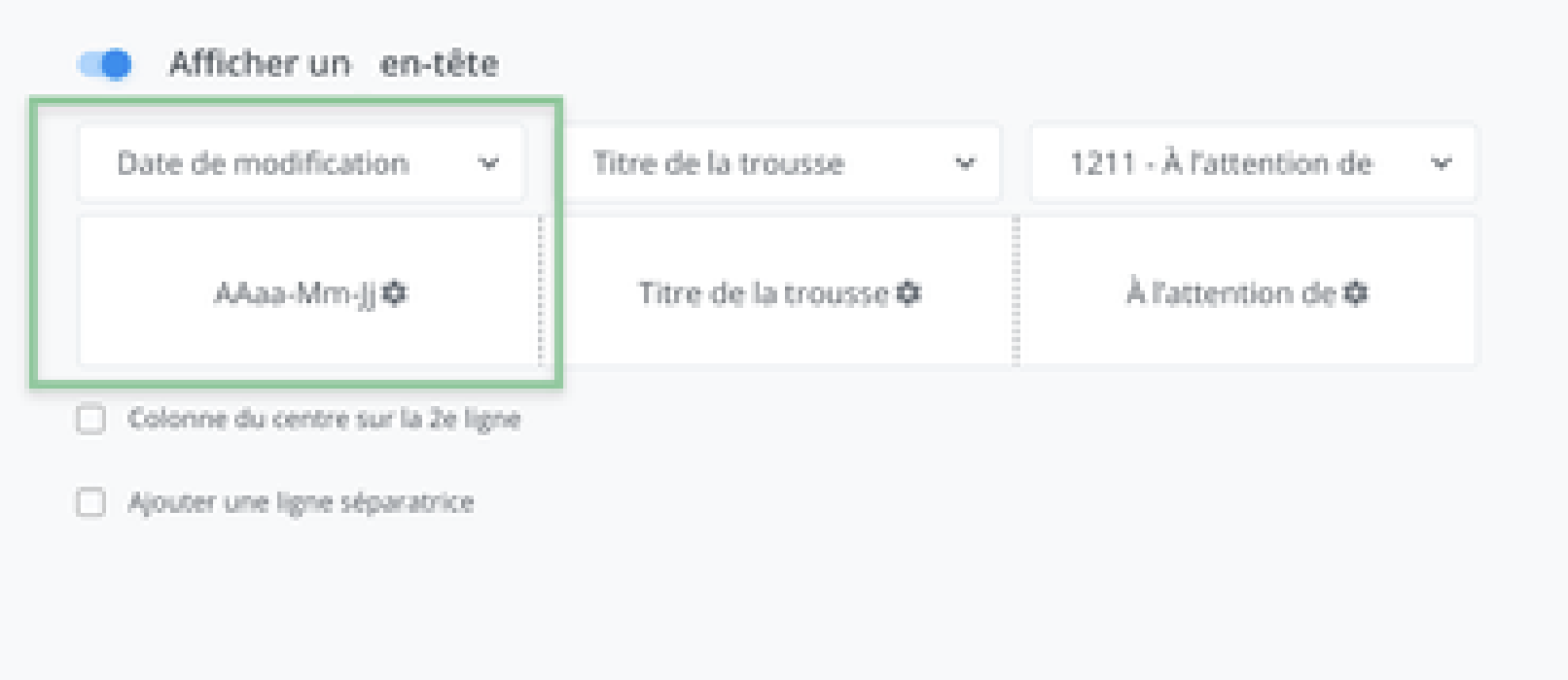 Il est possible d’insérer une ligne séparatrice pour délimiter l’en-tête. Pour ce faire, cliquer sur Ajouter une ligne séparatrice situé dans les paramètres de l’en-tête.