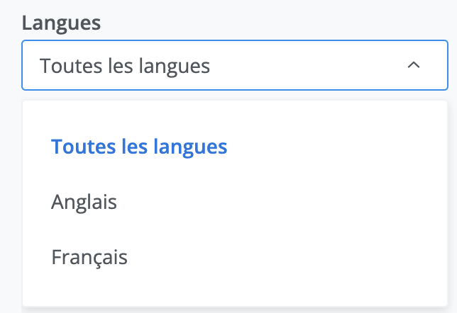 Les choix sont anglais, français ou « Toutes les langues » (Français ET Anglais).