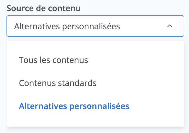 Les contenus personnalisés sont ceux que vous aurez vous-même adaptés à partir des contenus du répertoire. Pour les retrouver, sélectionnez le filtre “Alternatives personnalisées”.