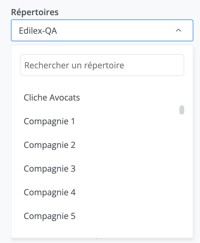 Le filtre « Répertoire » permet de filtrer la liste de contenus pour tous les répertoires ou un seul répertoire parent / sous-répertoire auquel l’utilisateur a accès en lecture.