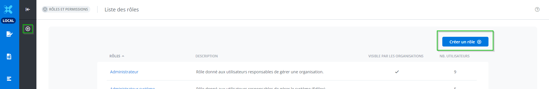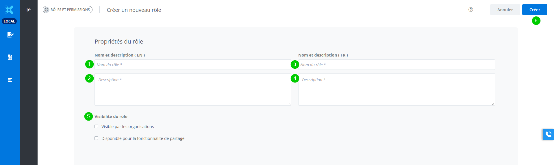 Accéder à la fenêtre de création d’un rôle en cliquant sur l’un des deux boutons Créer un rôle à partir de la liste des rôles accessible dans les paramètres.