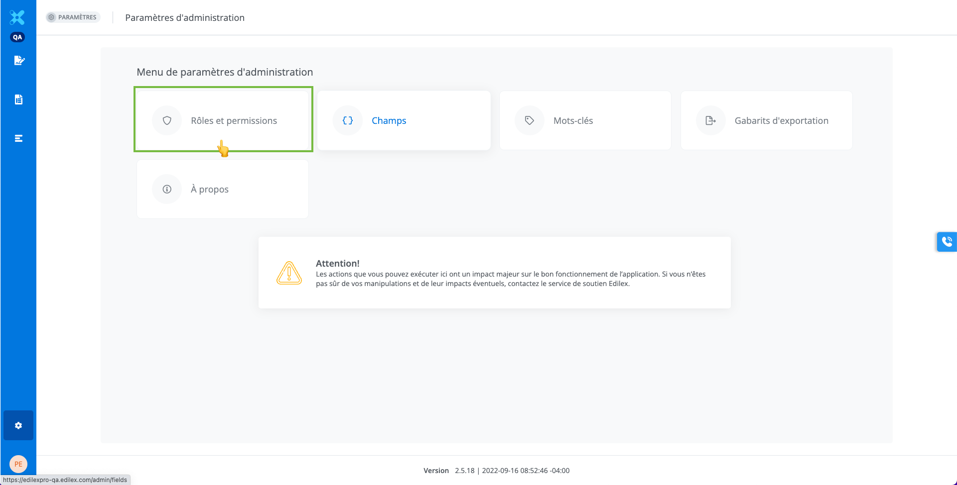 Seulement les administrateurs Edilex peuvent modifier ou créer un rôle. Pour toute question reliée à la modification d’un rôle, svp contacter le info@edilex.com .