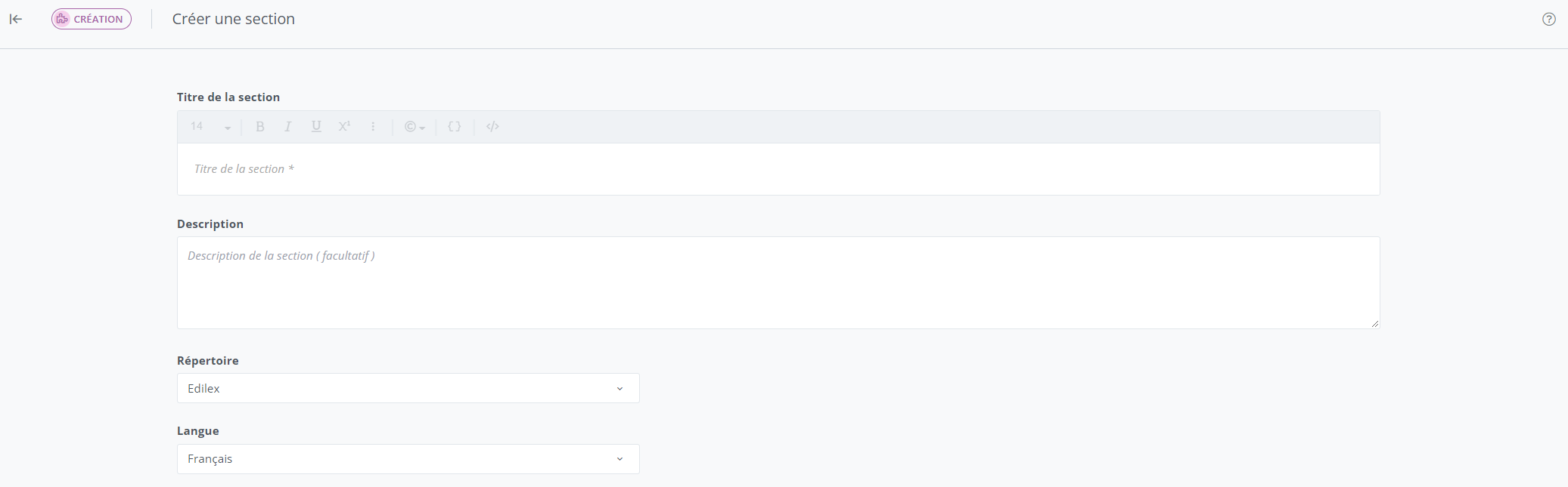 Il est impossible de modifier le répertoire et la langue de rédaction d’une section après sa création.
