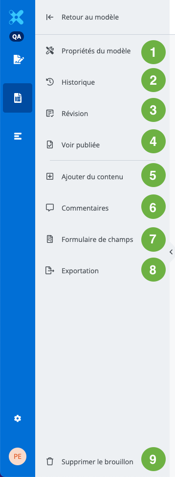 Note : Les outils disponibles dans la barre d’accès rapide diffèrent selon le type de contenu et selon le rôle et les permissions de l’utilisateur.