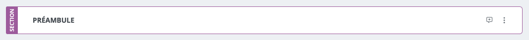 Les sections sont identifiées par la couleur mauve et le libellé SECTION.