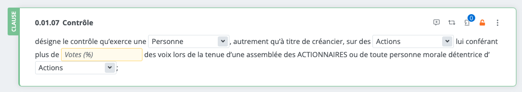 Le contenu de la clause sélectionnée (celui qui se trouve dans le document).
