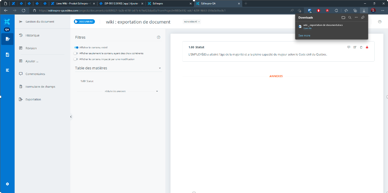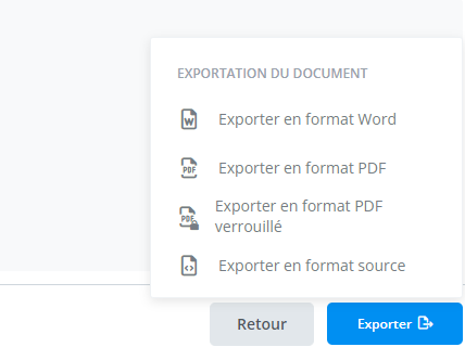L’exportation sert à télécharger le document sous la forme d’un document Word ou PDF.