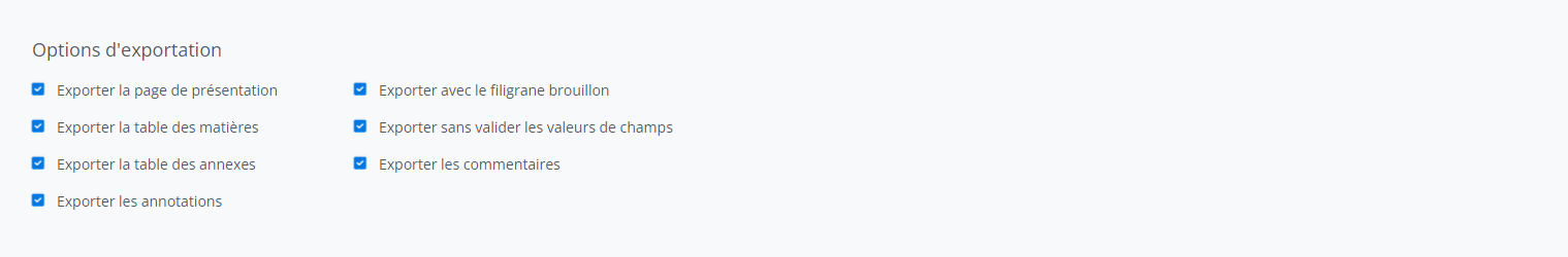Les options d’exportation permettent de configurer certains paramètres d’exportation.