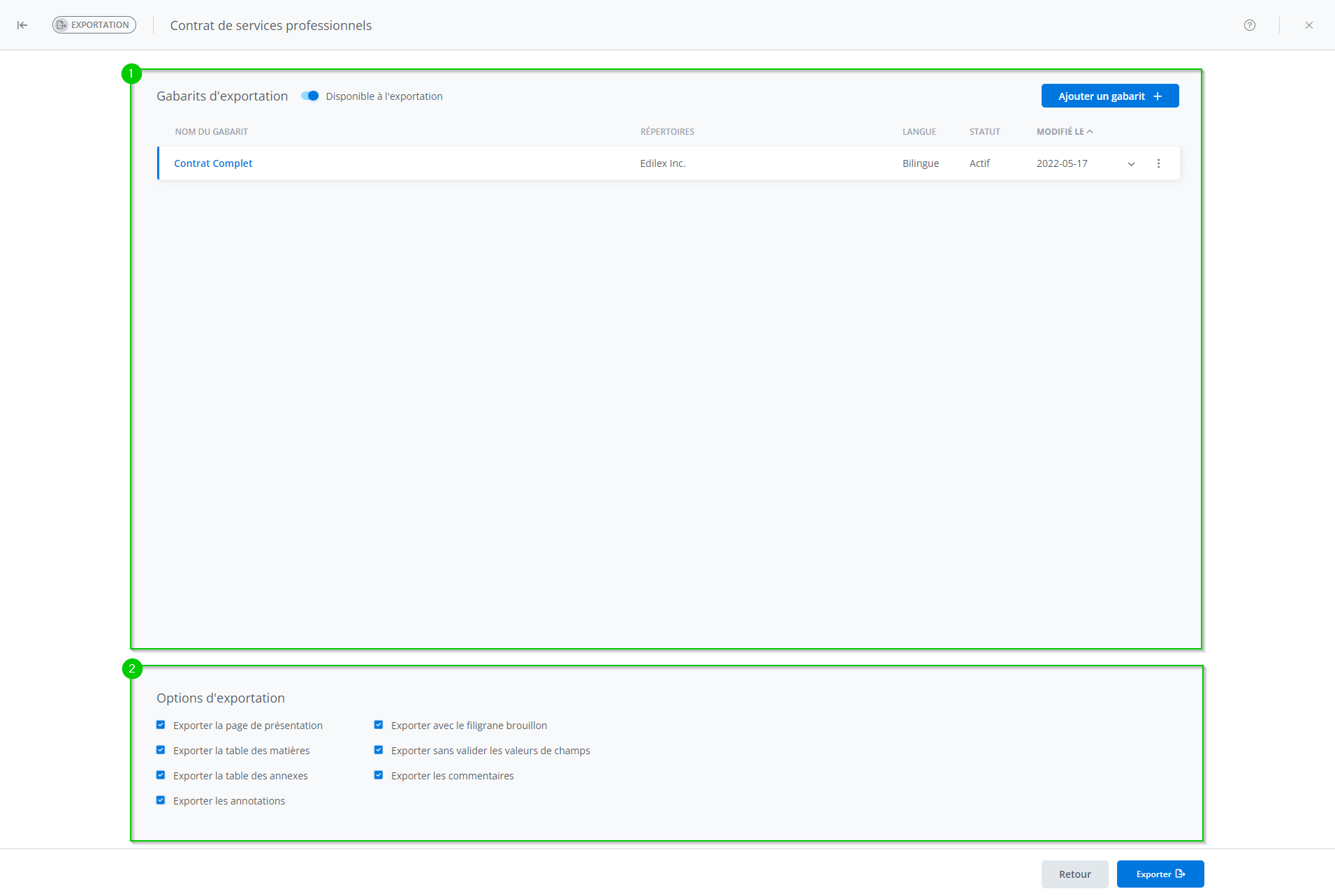 1. Sélectionner le gabarit d’exportation