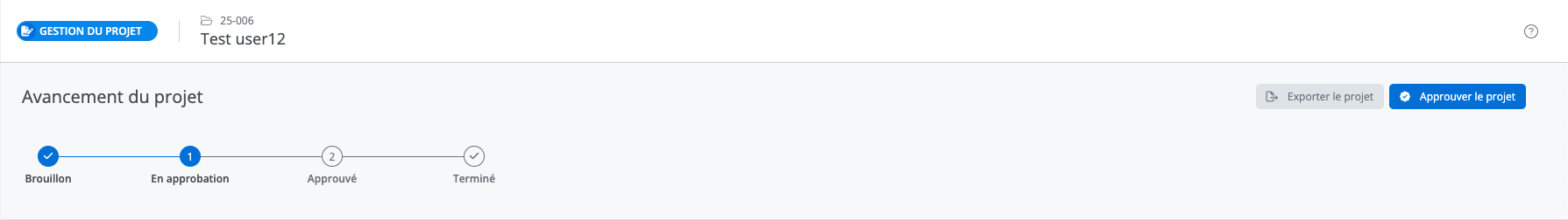 Par exemple, si vous avez accès à la fonctionnalité de processus d’approbation et que vous l’activez, les étapes d’approbation seront ajoutées dans le flux d’avancement du projet.