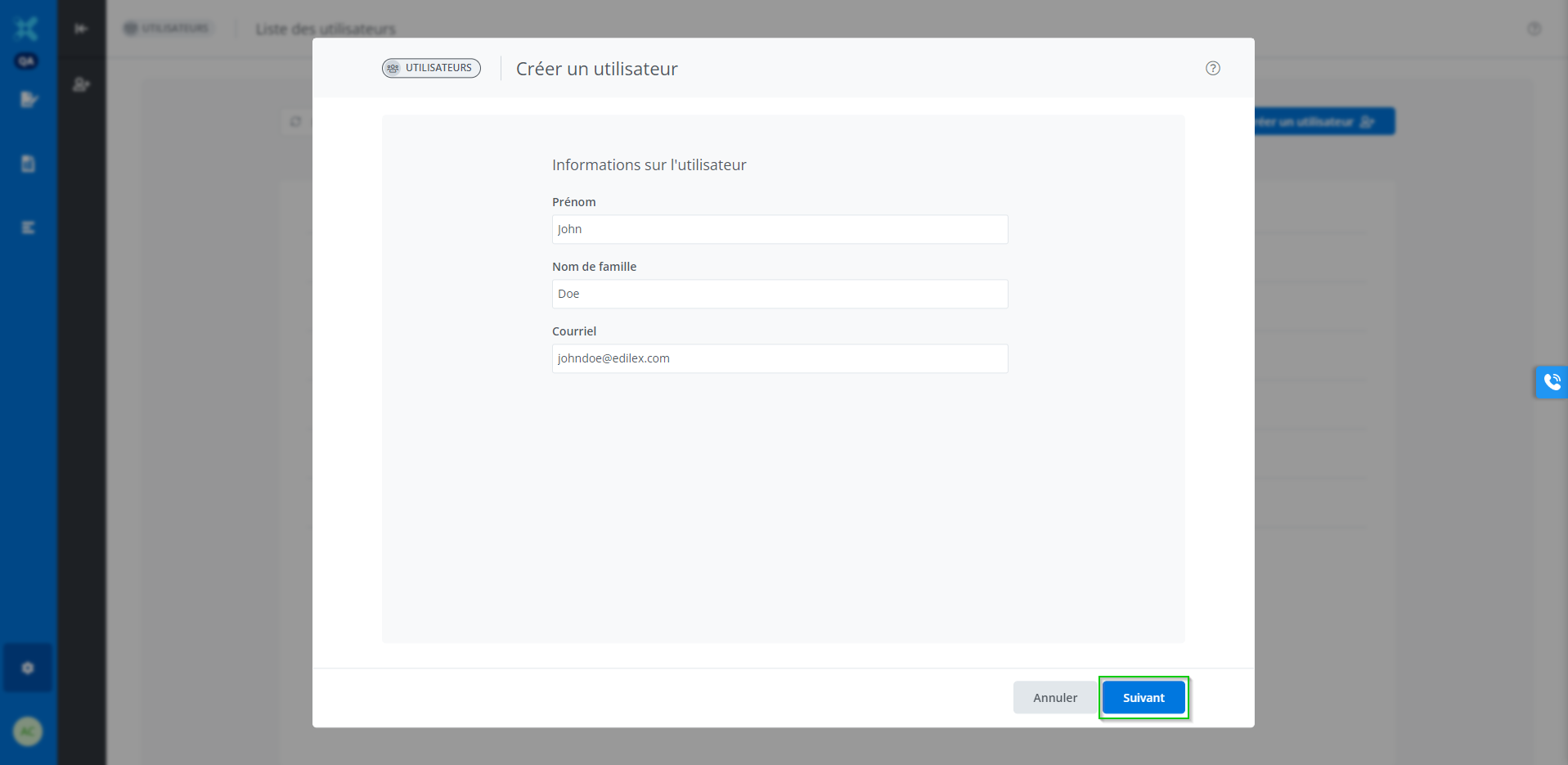 Une fois les informations entrées, cliquer sur Suivant.
