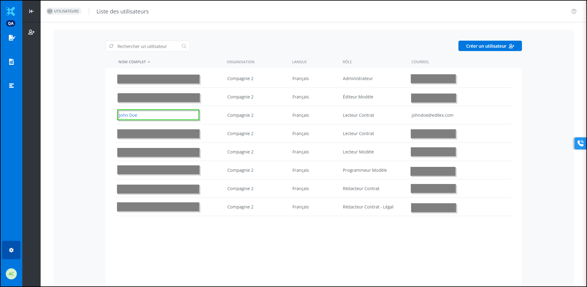 Dans la liste des utilisateurs de l’organisation, sélectionner l’utilisateur désiré.