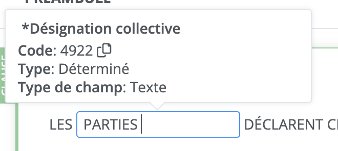 Cliquez sur l’icône Copier dans l’infobulle du champ présent dans le document;