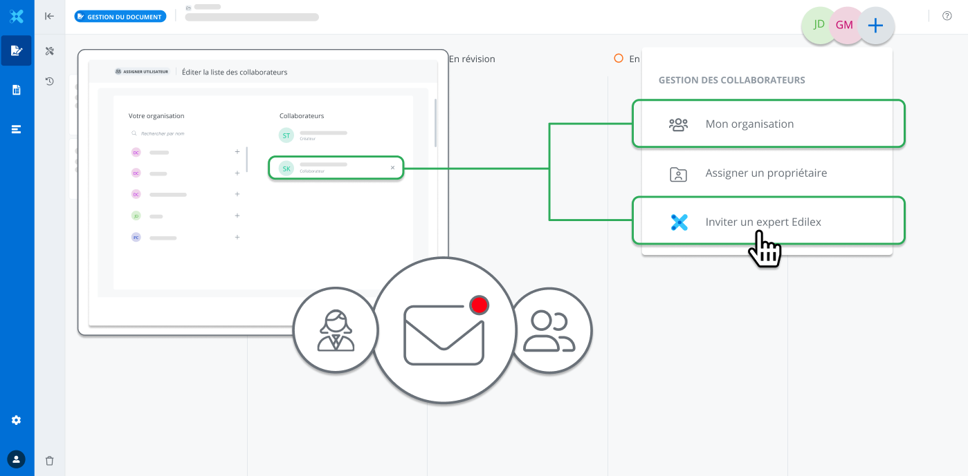 Ce nouvel outil de communication vous aidera dans des cas bien précis, soit à l’invitation d’un collaborateur sur un document ou encore lors de l’invitation d’un expert de l’équipe Edilex. Dans ces deux cas, ces derniers recevront maintenant une notification courriel les invitant à collaborer avec vous sur le document à partir duquel l’invitation a été envoyée. Ils pourront alors facilement rejoindre le ou les documents partagés en suivant un lien vers ceux-ci fourni à même la communication rendant ainsi plus efficace la collaboration au sein de la rédaction.