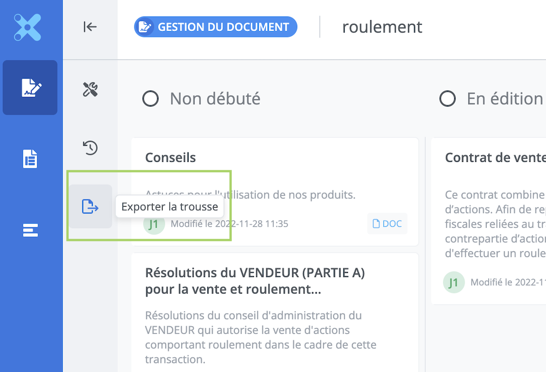 Il est maintenant possible (et très simple!) d’exporter l’ensemble des documents d’une trousse en quelques clics! Nous avons ajouté une nouvelle option d’exportation à partir de la gestion du document.