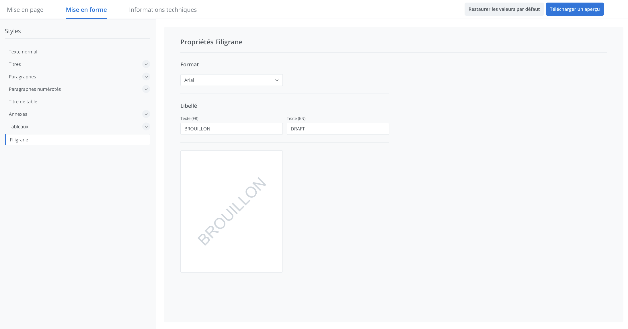 Vous pouvez maintenant personnaliser le filigrane de vos documents à partir de la mise en forme des préférences d’exportation.