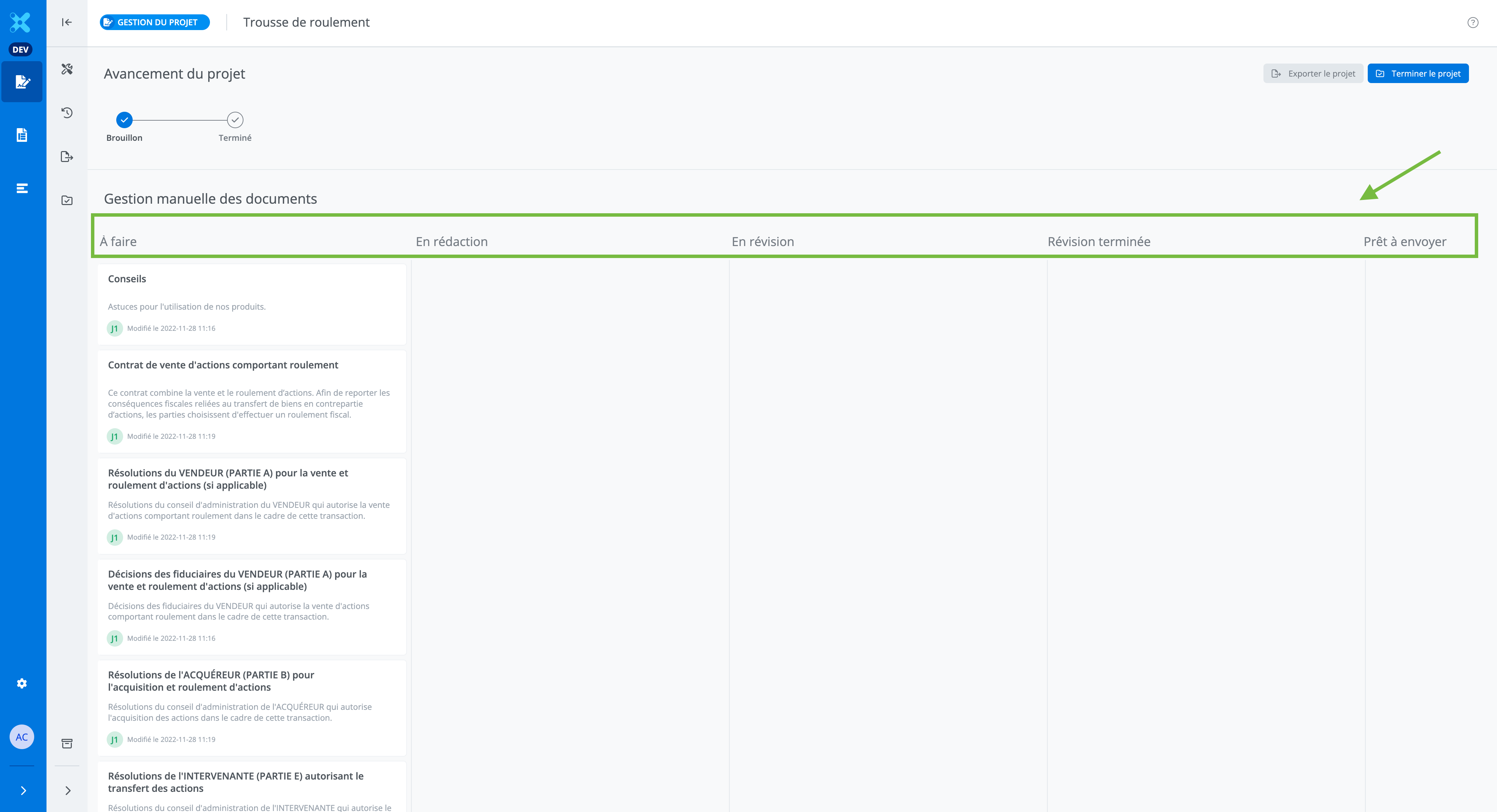 Personnalisez les statuts de la gestion manuelle des documents